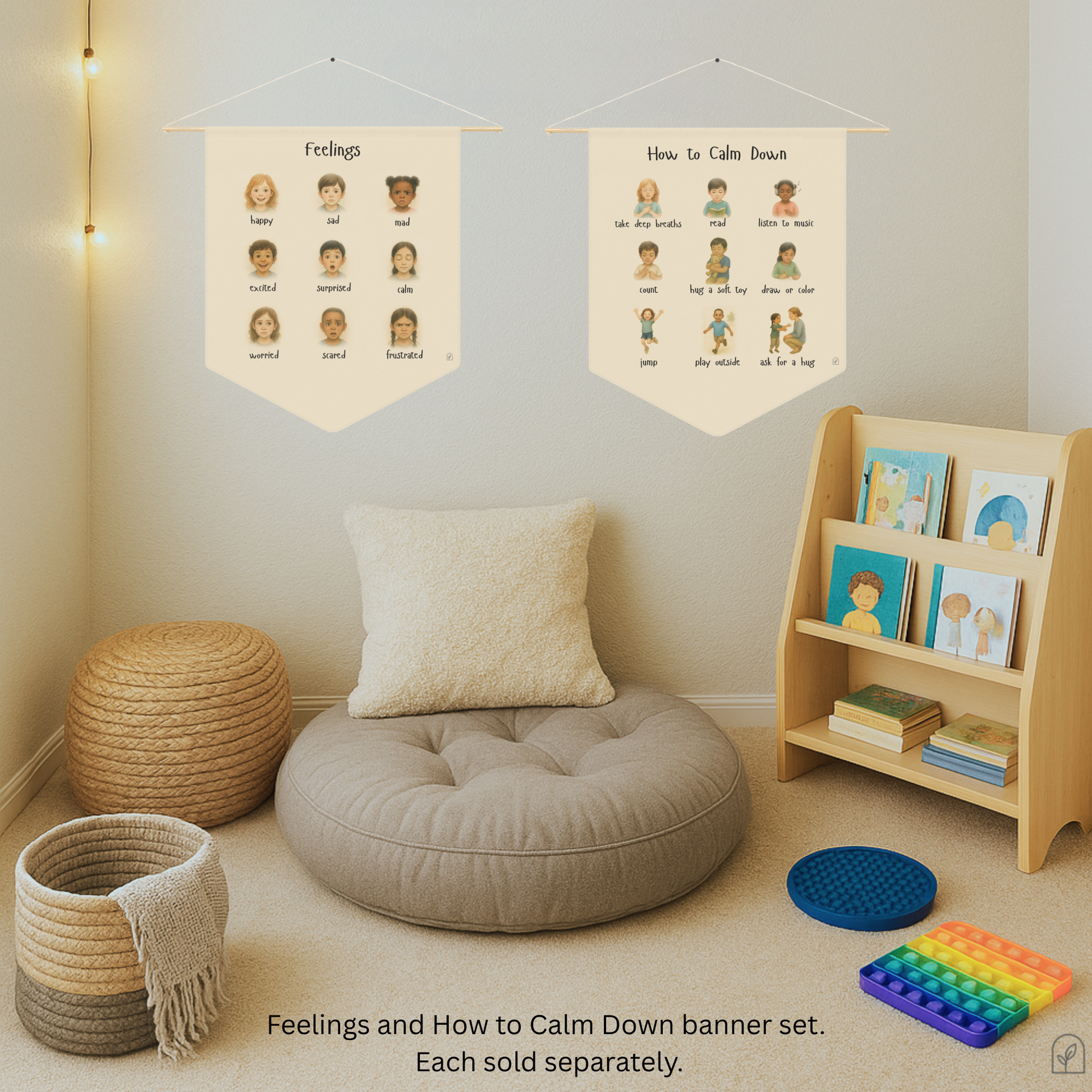 Looking for tools to help children respond to their emotions too? Pair this with our calming techniques wall pennant — "How to Calm Down" — a visual guide to simple, soothing strategies kids can try when big feelings arise. Together, they create a beautiful and practical set for nurturing the whole child.